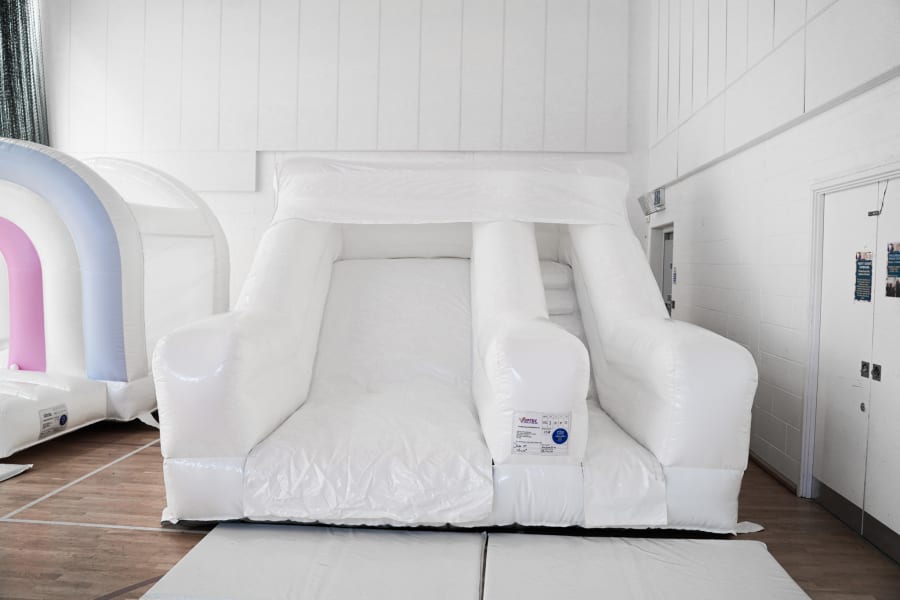 Transform your party or event into a memorable experience with our all white large inflatable slide available for hire in Bristol and Bath. This stunning slide is perfect for birthday parties, charity events, and weddings, adding a touch of fun and excitement to any occasion.