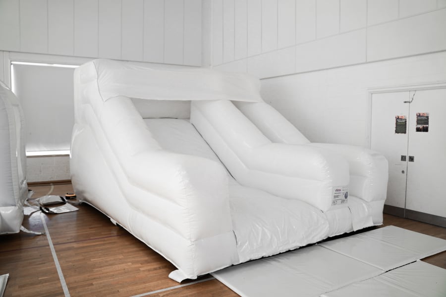 The large inflatable white slide provides an exhilarating experience as kids slide down and make a splash at the bottom. The slide is built with high-quality materials to ensure safety and durability, giving parents peace of mind while kids have a blast.